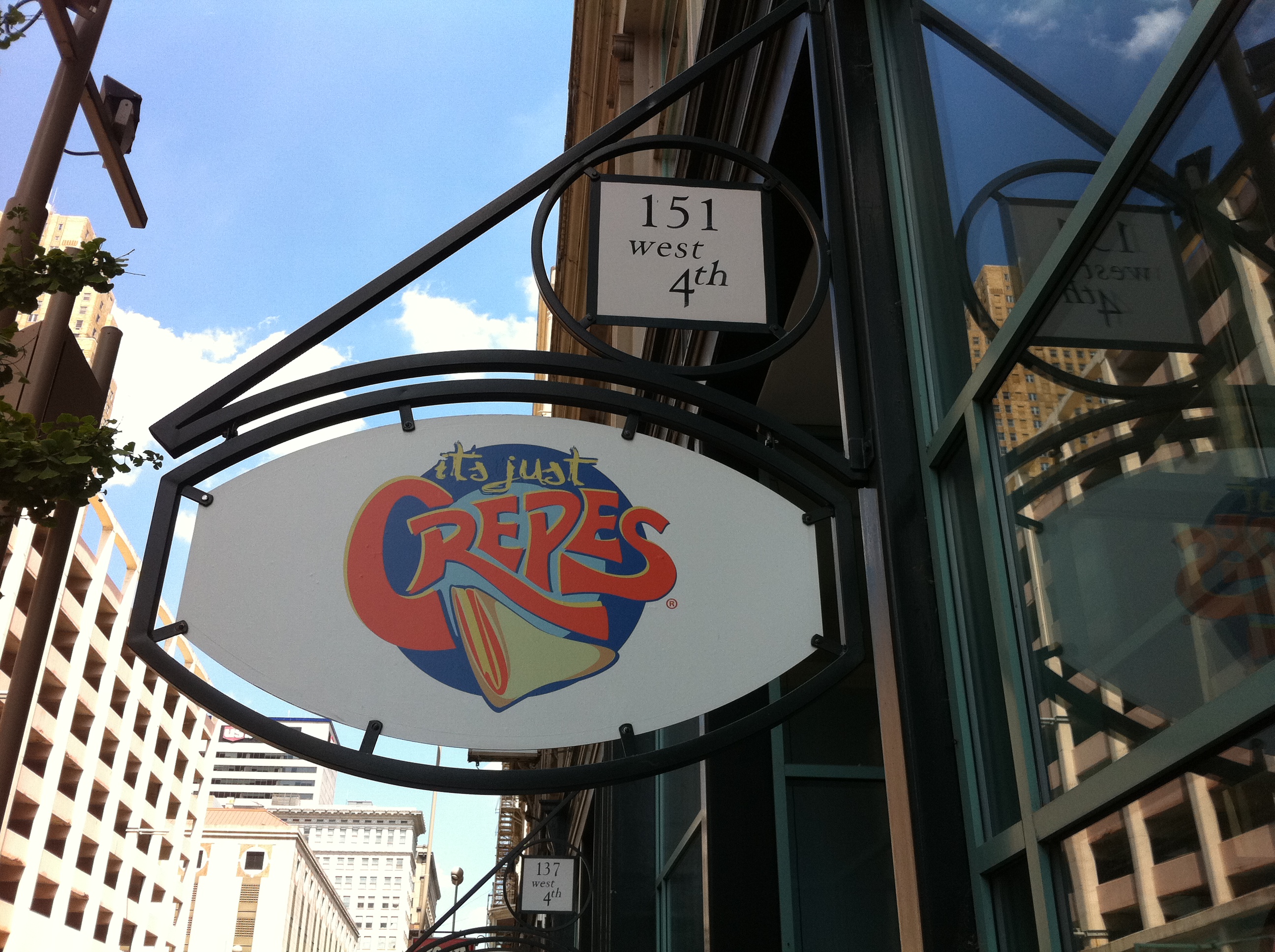 When we left the Freedom Center one hot July afternoon with aching feet, blurred vision and our emotions on overload, both of us just wanted to sit down somewhere cool and eat something filling and delicious. We crossed over I-71, made our way up Vine Street, and voila, we discovered a bit of French culinary magic at It’s Just Crepes. From the moment we walked into the small store-front café, our senses were overcome by scents both sweet and savory. The aromas were so overpowering, the way our stomachs rumbled in appreciation you would have thought we were giving a pre-movie demonstration of THX® surround sound technology. So we studied the menu and realized that this joint offered much more than just the meager crepes selection presented at IHOP.