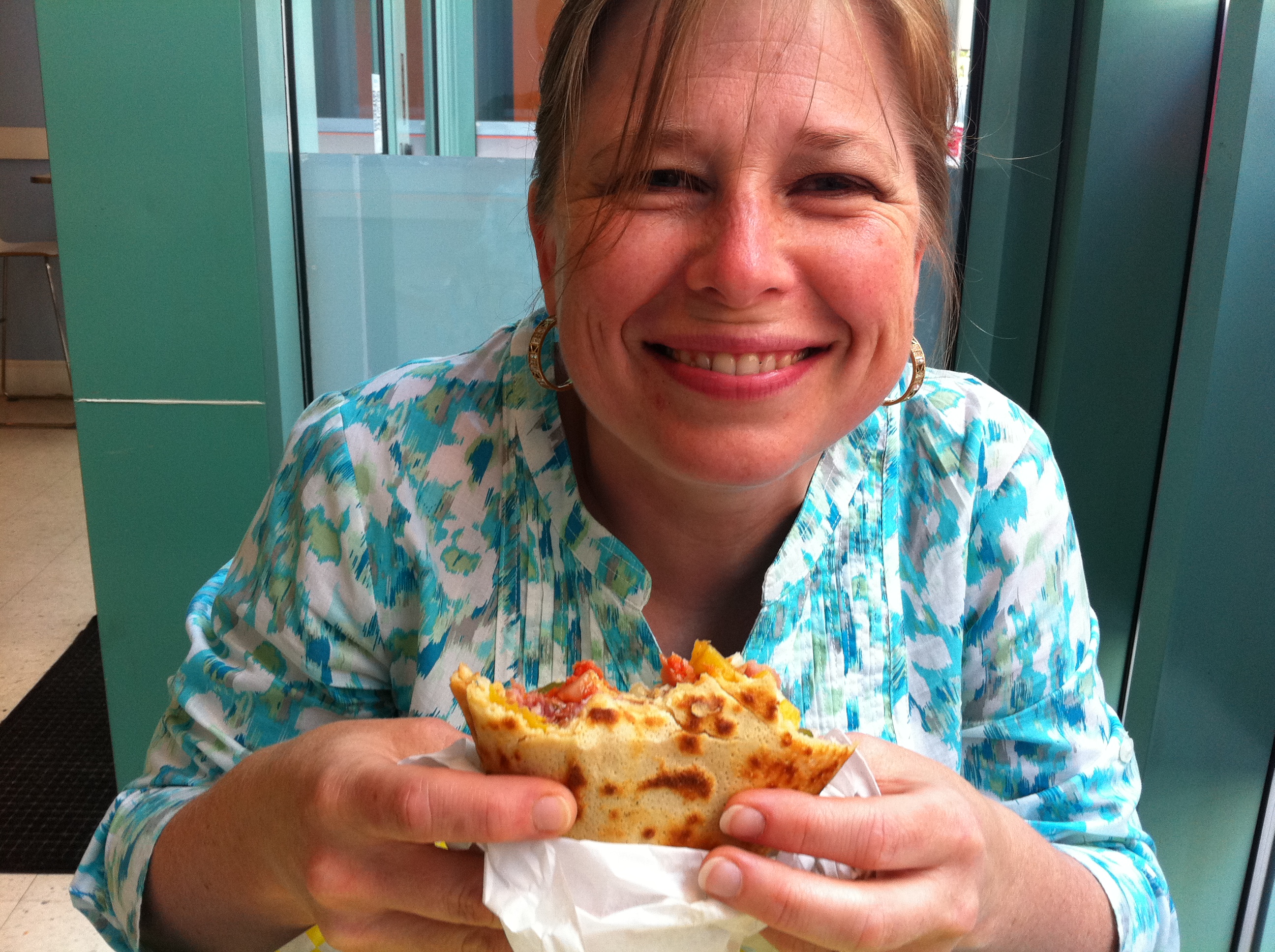 It’s Just Crepes dishes up every sort of crepe imaginable, and even adds some new Americanized twists to this French classic. Heather chose the Italian crepe stuffed with Mozzarella cheese, sliced pepperoni, ham, banana peppers, sautéed onions, green peppers and pizza sauce. Because of my chronic spice addiction, I went straight for the Southwestern crepe filled with pepper jack cheese, diced chicken, sautéed onions and red peppers, and drizzled with a chipotle mayonnaise. Both were out-of-this-world delish! In fact, they were so good we both wore huge, satisfied smiles for the rest of the afternoon and gave the chef our compliments with a promise to return. And we’ve lived up to that promise… twice!