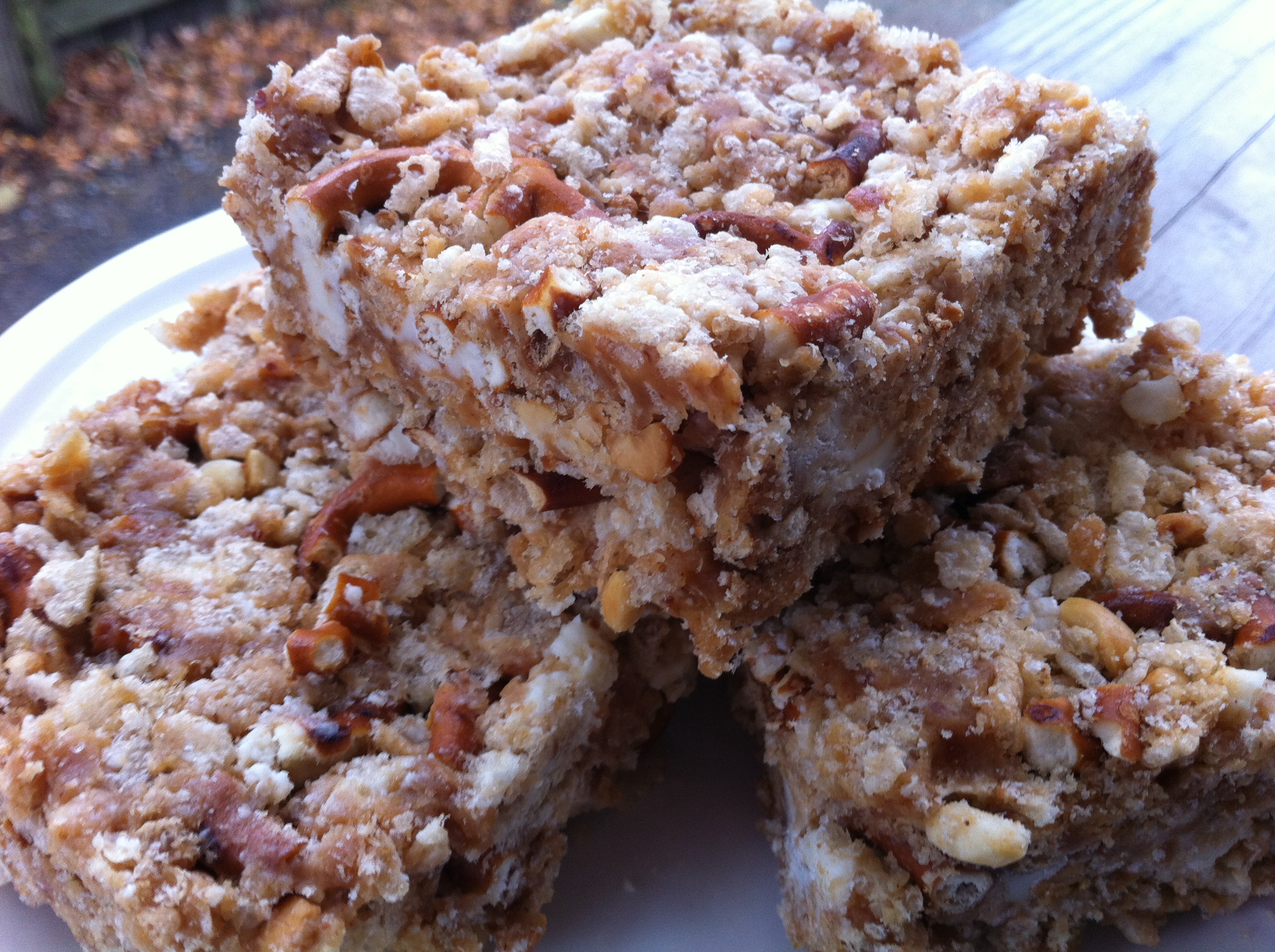 Combining sweet white chocolate, crunch peanut butter, crispy cereal and salty pretzels, our White Chocolate Crunch Bars are perfect for satisfying movie night cravings.We love movies! Whether we’re watching Hugh Jackman swing his fists with robot boxers in Real Steel, Daniel Craig kick alien butt in Cowboys & Aliens, or Chris Evans save the world from Nazi terror in Captain America, when we’re on the edge of our stadium seats at the cinema or relaxing on our overstuffed sofa at home, we’re usually craving something salty and sweet while we cheer for our favorite Hollywood heroes. While dumping our M&M’s or Reese’s Pieces into our popcorn may satisfy our cravings, we’ve also found that our homemade White Chocolate Crunch Bars do the trick too, and without the high price tag. A blend of white chocolate, crunchy peanut butter, Rice Krispies and salty pretzels delivers a treat your whole family will love to munch during even the most intense action flick. Just serve with your favorite soft drink and you’re ready for a night at the movies!