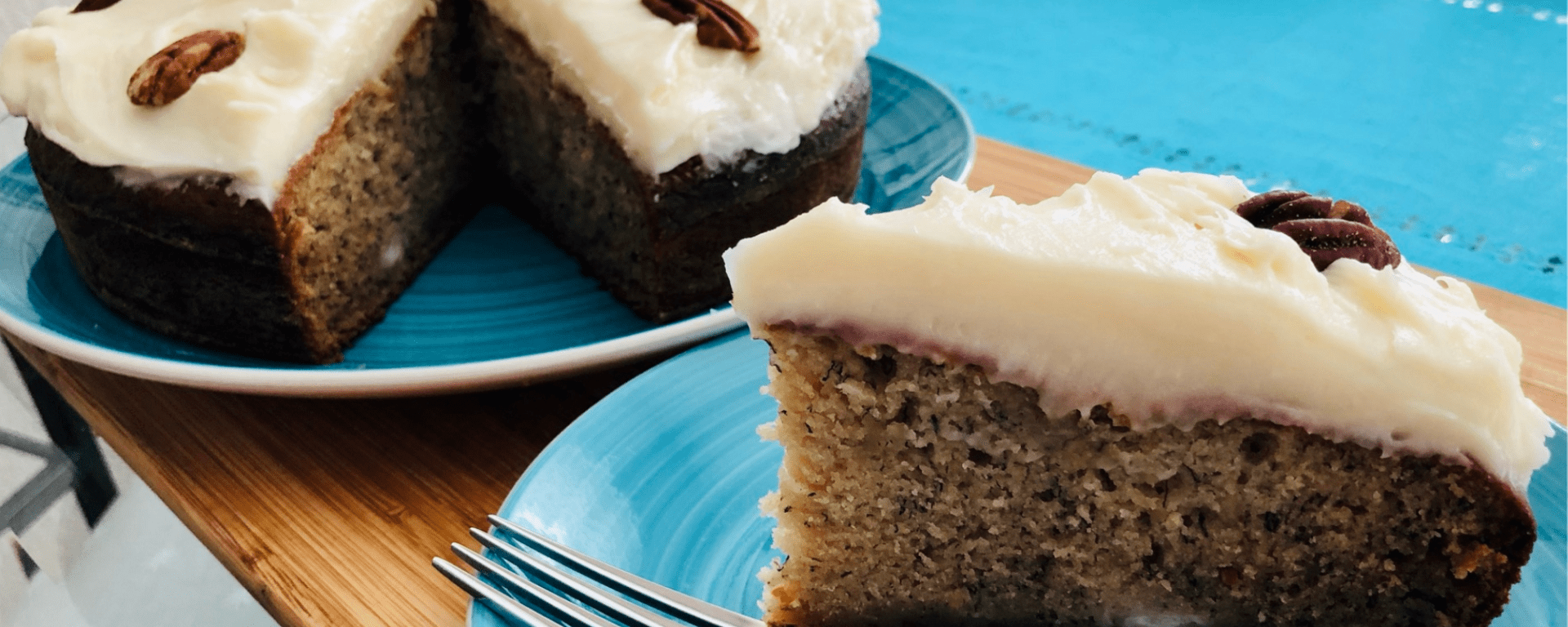 If you’re like us, you may find that bananas always seem to ripen before we can eat them all. Since we hate to waste food, we usually wind up using those very ripe bananas to bake up a batch of Banana Nut Bread or Banana Crunch Muffins. But sometimes we just get a hankering for something sweet. That’s when this delicious Banana Cake with Cream Cheese Frosting is just what the doctor ordered. It is tall, beautiful, and super moist and the citrus zest adds just the right amount of brightness. Best part of all, you probably already have all the ingredients on hand. Enjoy!