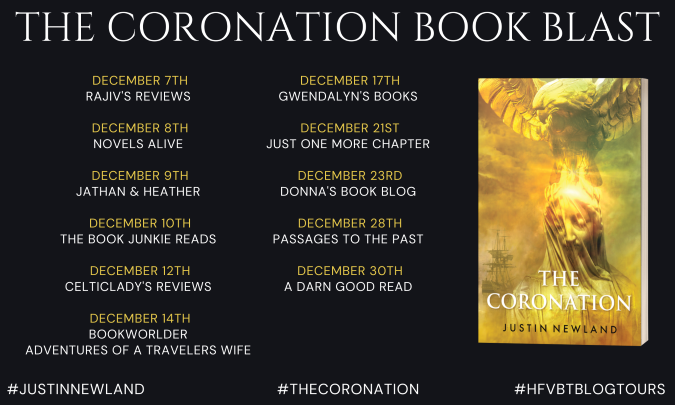There are some authors who deposit their characters in the midst of history, showing how their lives parallel historic events. Then there are authors like Justin Newland who bend history to their will and use fantastic elements to show us what could have been. If you enjoy the latter, you won’t want to miss The Coronation, a tale about war, fortune, and family honor. Enjoy!—J&H