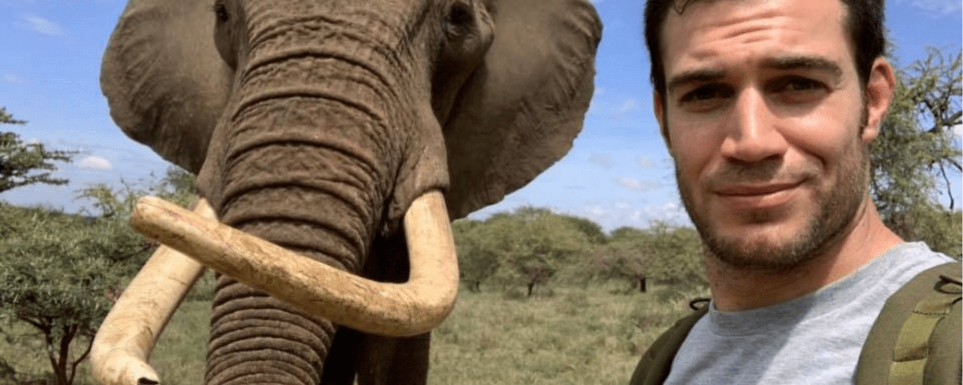 Evan Antin with an elephant friend at the Ol Jogi Wildlife Conservancy in Nanyuki, Kenya.