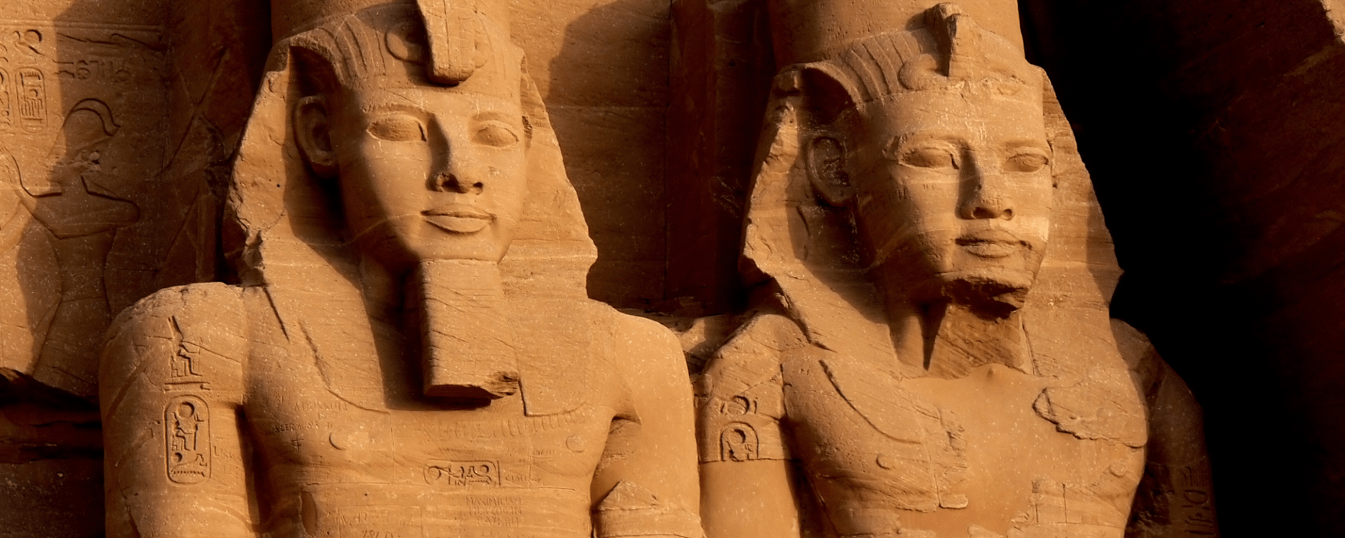 Statues of Ramses II at the entrance to the main temple at Abu Simbel in Nubia. (Photo courtesy Canva)