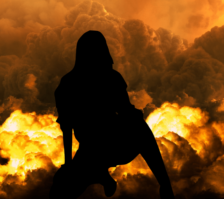 Woman silhouette in front of explosion
