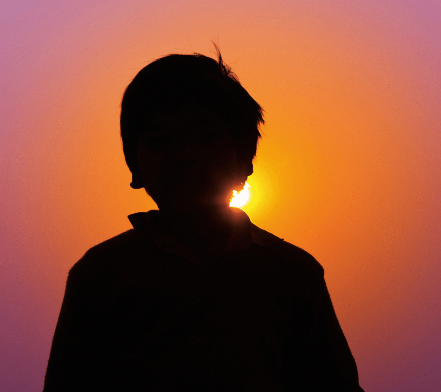 Silhouette of boy in front of sunset